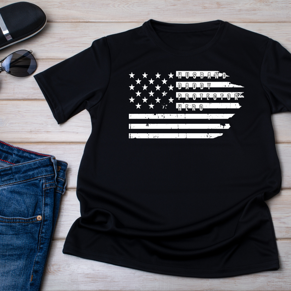 "Husband, Daddy, Protector, Hero" American Flag T-Shirt